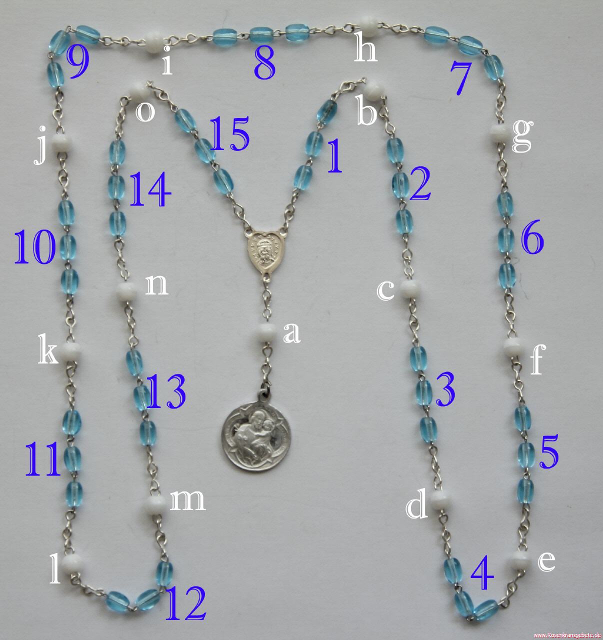 * Bei jeder weissen Perle wird ein anderes der 15 Geheimnisse hinzugefügt.