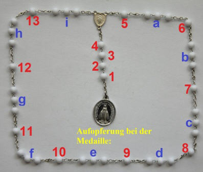Bei der einzelnen weissen Perle (4) je 1x: Erlange mir göttliche Einsprechungen und die besondere Gnade; dieselbe treu zu befolgen.