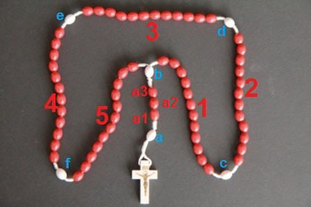 Bei den 12 roten kleinen Perlen (3) je Perle 1x: L: Kostbares Blut Jesu Christi.