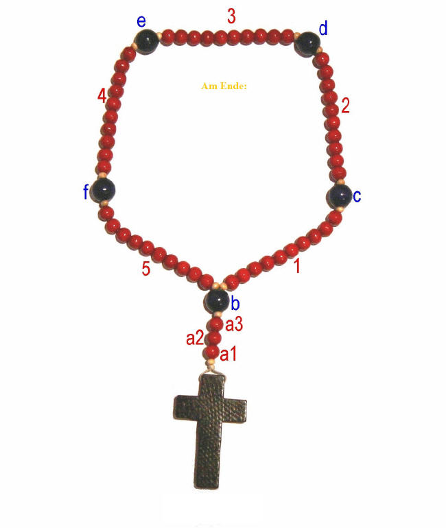 A durch die Verdienste Deiner heiligen Wunden. Bei der großen Perle (b) je 1x: V Mein Jesus, Verzeihung und Barmherzigkeit,